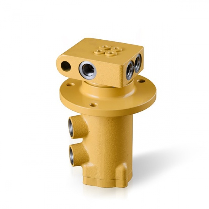 產(chǎn)品簡介:液壓中央回轉(zhuǎn)接頭是挖掘機(jī)、起重機(jī)、高空作業(yè)車、盾構(gòu)機(jī)、旋挖機(jī)、平地機(jī)、海上作業(yè)平臺等液壓系統(tǒng)中的關(guān)鍵零部件,其作用是連接整個液壓系統(tǒng)中固定與旋轉(zhuǎn)部分的液壓管路,使系統(tǒng)液壓管路上下兩部分具有相對回轉(zhuǎn)運(yùn)動360度而不發(fā)生干擾。